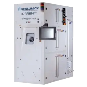 RCA Clean is a critical step in wafer processing. Our TORRENT® Spray Acid Tool (SAT) is purpose-built for efficient, high-throughput RCA cleaning. The SAT441 model features a single chamber with four integrated tanks for on-demand mixing of SC1, SC2, dHF, and Piranha, enabling fully sequential processing without wafer transfers. In-situ processing reduces chemical use, improves DI water efficiency, and minimizes oxide regrowth thanks to a nitrogen-purged chamber. As a sustainable green alternative, our Spray Ozone Tool (SOT) replicates RCA steps using ozone (O₃) instead of hydrogen peroxide, and supports ultra-dilute HF or ammonia for added flexibility. Shellback’s proprietary HydrOzone™+ process replaces traditional Sulfuric Peroxide Mix (SPM) with an O₃:NH₄OH blend for effective removal of organics, resist, and particles. For comprehensive surface conditioning, FluorOzone™—an O₃:HF mixture—enables a sequence equivalent to SPM > HF > APM > HPM, targeting organic, particle, and metal contaminants while rendering the surface hydrophilic. This process also achieves a controlled etch rate of approximately 5 Å/min of silicon dioxide (SiO₂).
